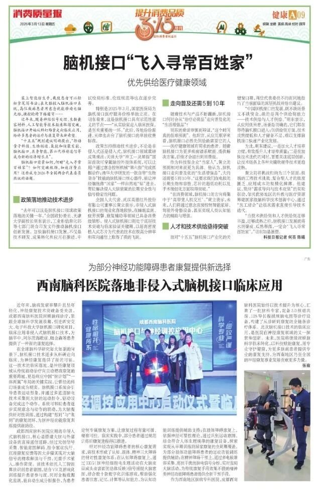 每年315,都是对诚信与品质的检验。今年,我们以硬核技术交出答卷,脑机接口技术正式投入临床应用,并荣登《消费质量报》!权威认可,既是肯定,更是责任。